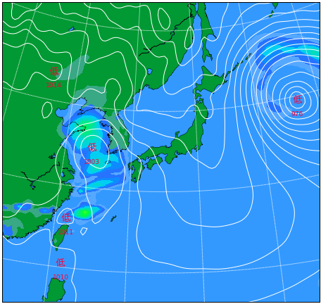 11日間の2週間天気図。業界最大級の週間予想天気図・気圧配置図は1週間よりさらに先の11日間までで、9時、21時の1日2枚で等圧線に加え、予想降水量も合わせてわかりやすい表示仕様。台風の進路情報の参考などにも。