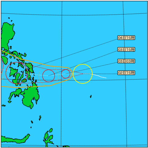※台風の中心が予報円の中心を結ぶ線を必ずしも進むわけではありません。