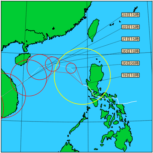 ※台風の中心が予報円の中心を結ぶ線を必ずしも進むわけではありません。