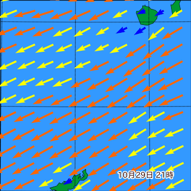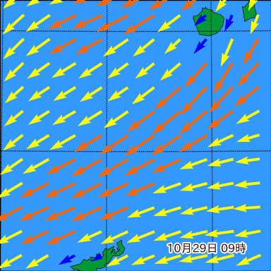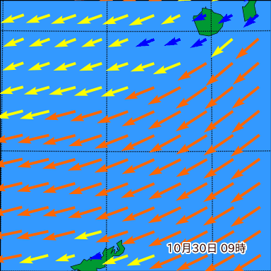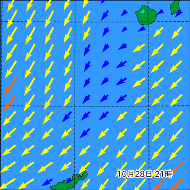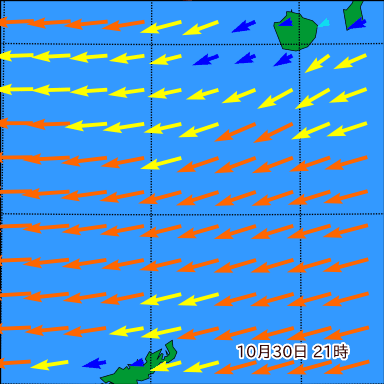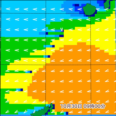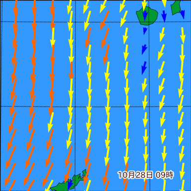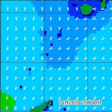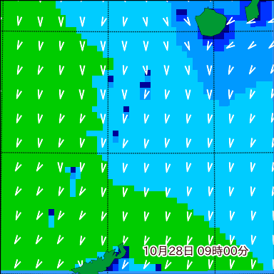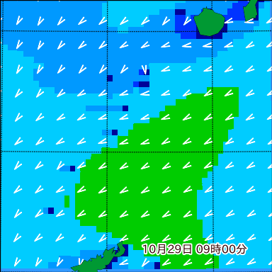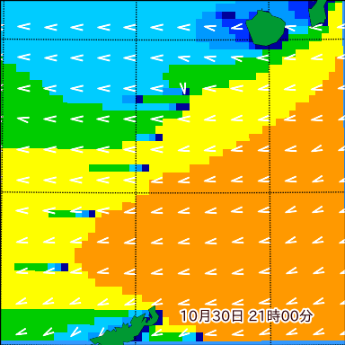 トカラ付近の波高を2日先まで分布図で確認できます。波高予測を広域で確認できるので、台風や低気圧による波高の推移や沖合のポイントの波高の参考になります。
