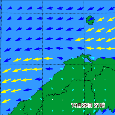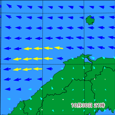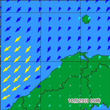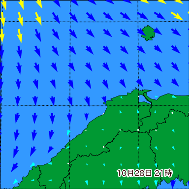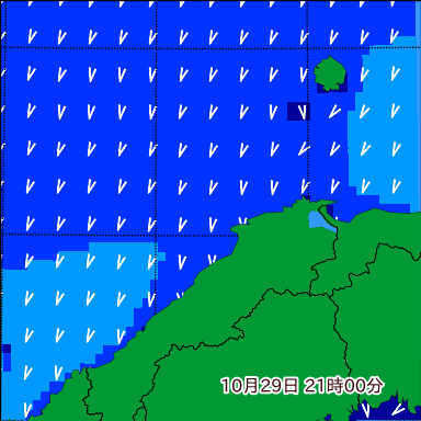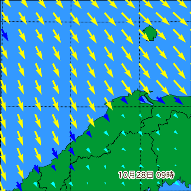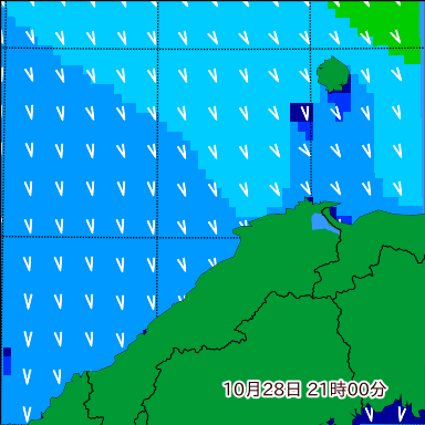 cEo_ij付近の波高を2日先まで分布図で確認できます。波高予測を広域で確認できるので、台風や低気圧による波高の推移や沖合のポイントの波高の参考になります。
