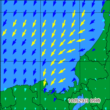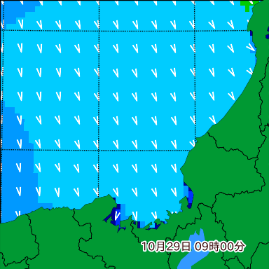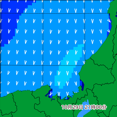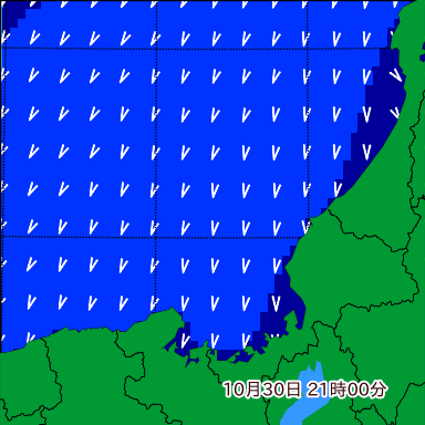 瘠キp付近の波高を2日先まで分布図で確認できます。波高予測を広域で確認できるので、台風や低気圧による波高の推移や沖合のポイントの波高の参考になります。