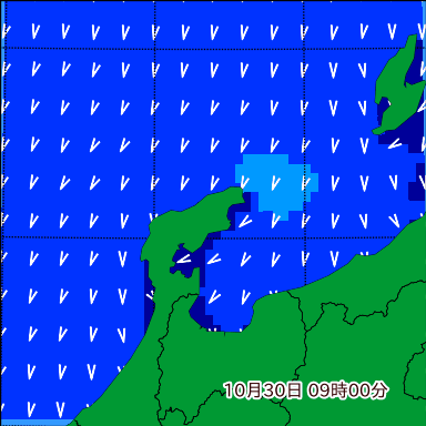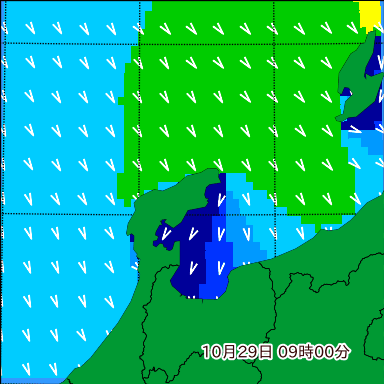 xRp付近の波高を2日先まで分布図で確認できます。波高予測を広域で確認できるので、台風や低気圧による波高の推移や沖合のポイントの波高の参考になります。