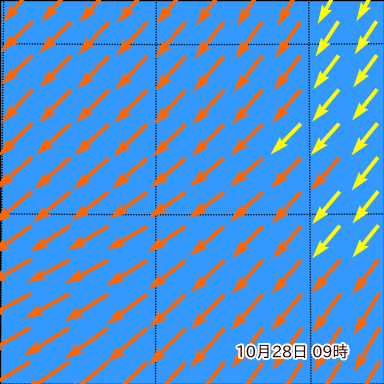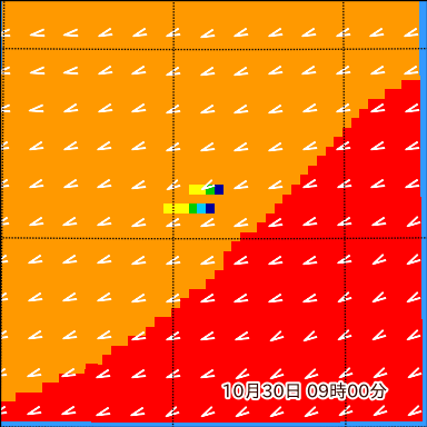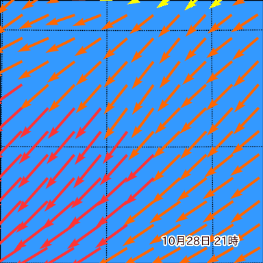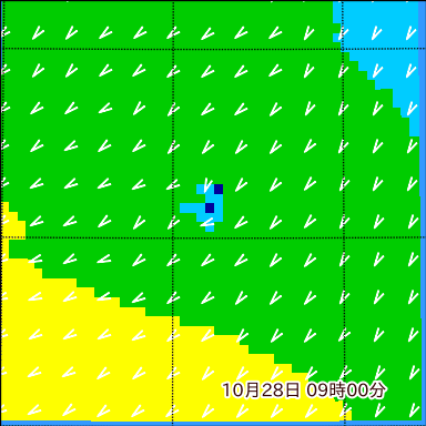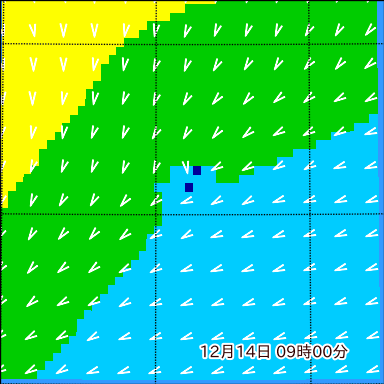 k蜩窪蜩付近の波高を2日先まで分布図で確認できます。波高予測を広域で確認できるので、台風や低気圧による波高の推移や沖合のポイントの波高の参考になります。