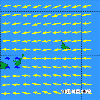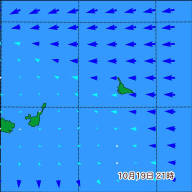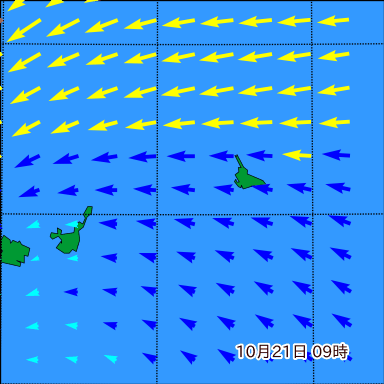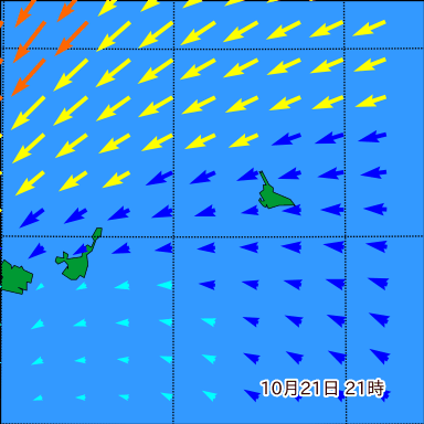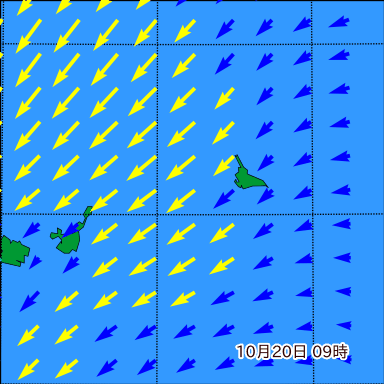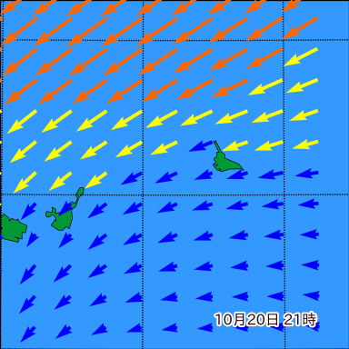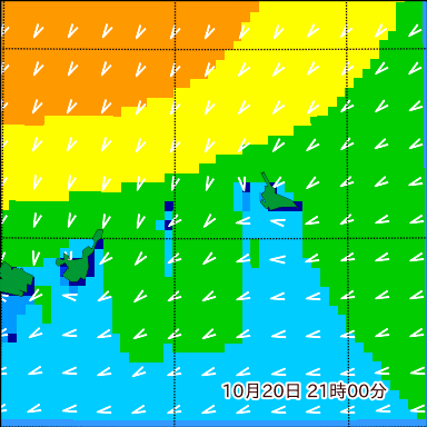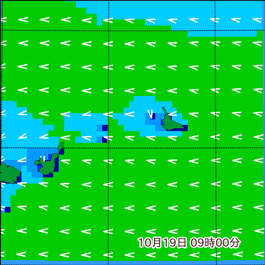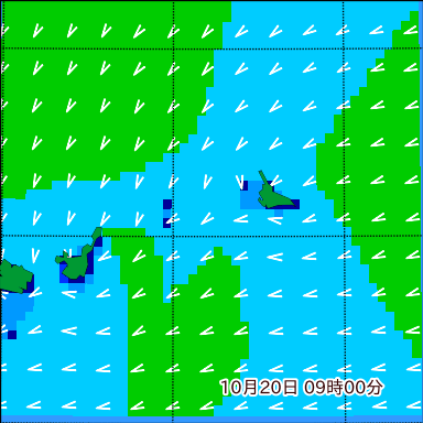 付近の波高を2日先まで分布図で確認できます。波高予測を広域で確認できるので、台風や低気圧による波高の推移や沖合のポイントの波高の参考になります。
